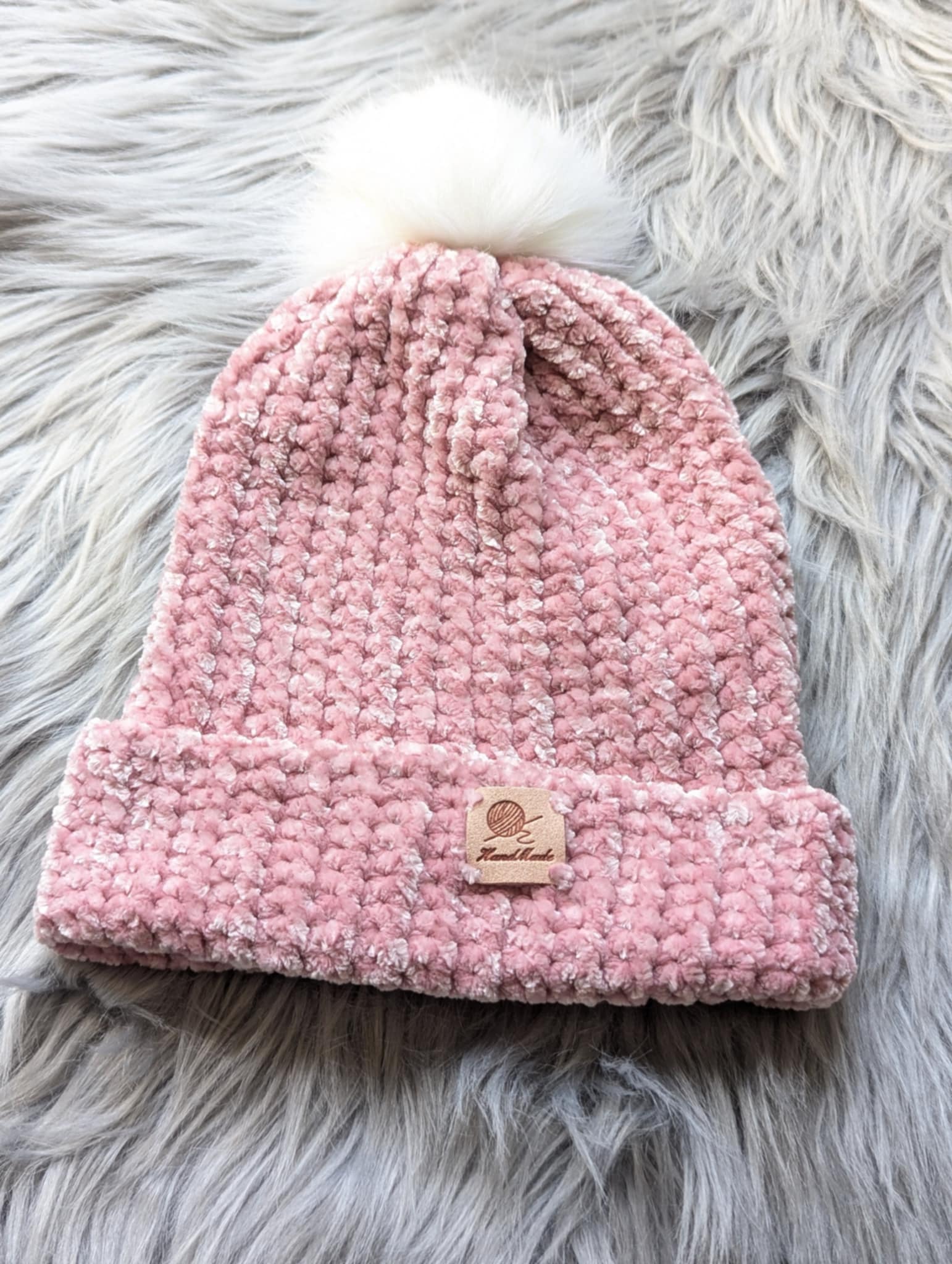 Gehäkelte Mütze - Velvet Garn - Bommel Mütze - Kids Size