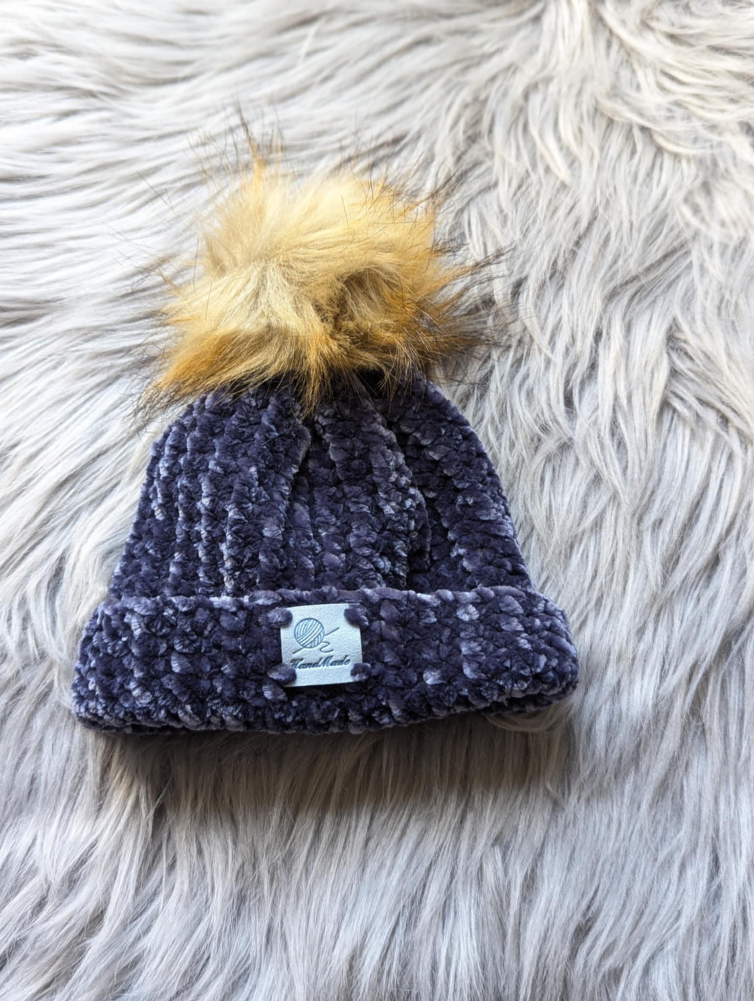 Gehäkelte Mütze - Velvet Garn - Bommel Mütze - Neugeboren